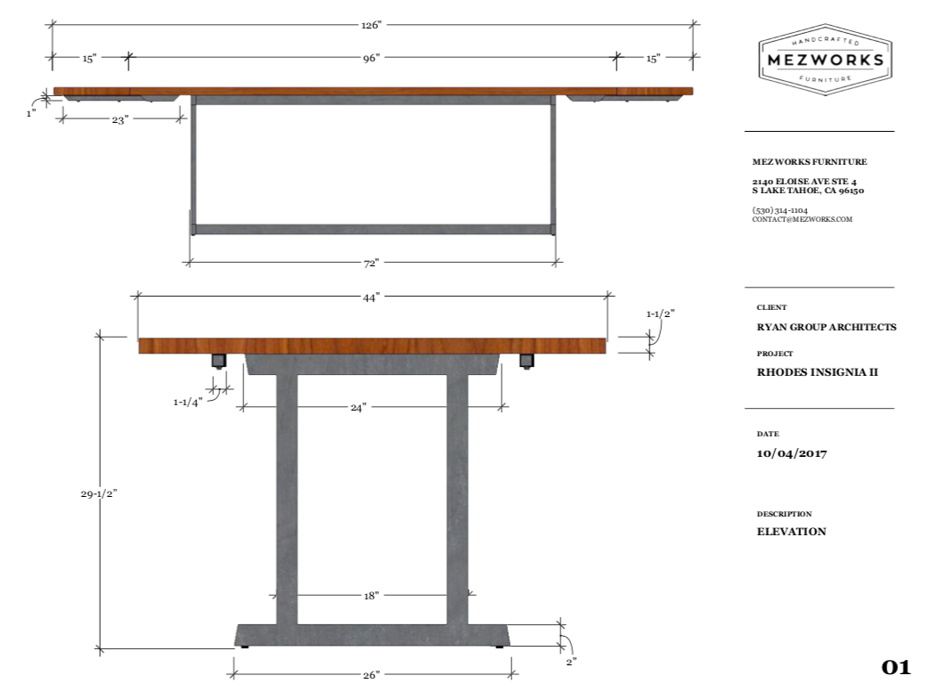 For table legs that are under-mounted and inset, it’s often required to place seating between the leg mounts in order to not interfere with leg room for those seated on the sides of the table. In most cases you must consider the dimensions of the legs and subtract depth from the overall allocated seating on the table sides. Recommended seating for 8 people, for example, would require that the table be about 102”L, allowing 24” per person seated on the sides between the leg mounts, 3” per leg, and an additional 12” of overhang at the head and foot of the table. To avoid having to place seating between the leg mounts, you can go wider with the tabletop so as to allow more overhang in front of the table leg. Recommended is that the leg be inset from the sides a minimum 10-12” to provide overhang which usually allows enough space for a person to be seated in front of the table leg without bumping legs or knees on the table leg. For example, if the table leg measures 28” at it’s widest point, the recommended tabletop width would be 48”. We can often go as small as 24” for the widest point of the leg, which would pair with a 44” tabletop. Smaller tabletop widths generally would not allow for comfortable seating in front of an inset under-mounted leg design.